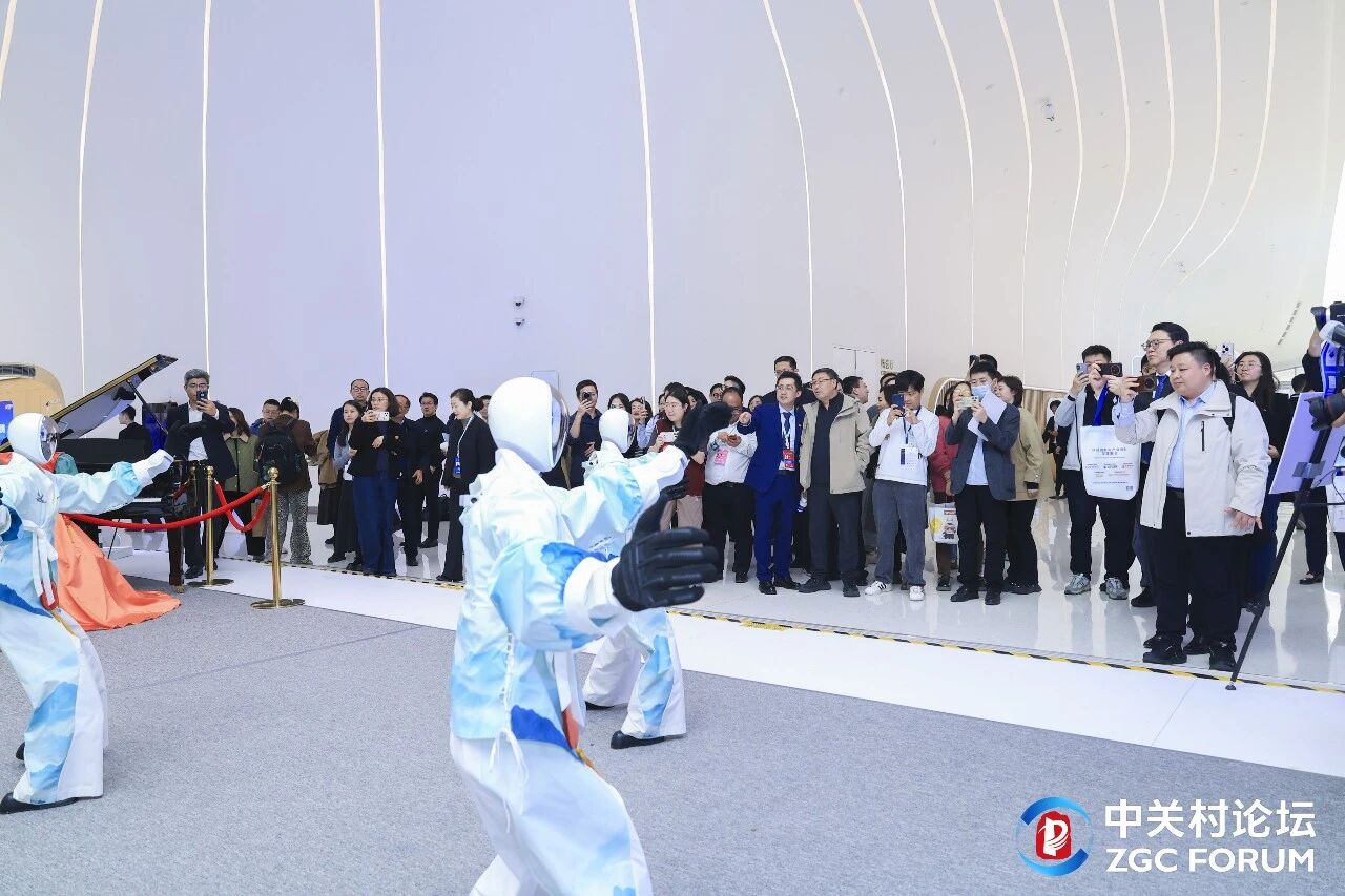 殷宇佳(右一)参加2026中关村论坛年会企业家交流活动